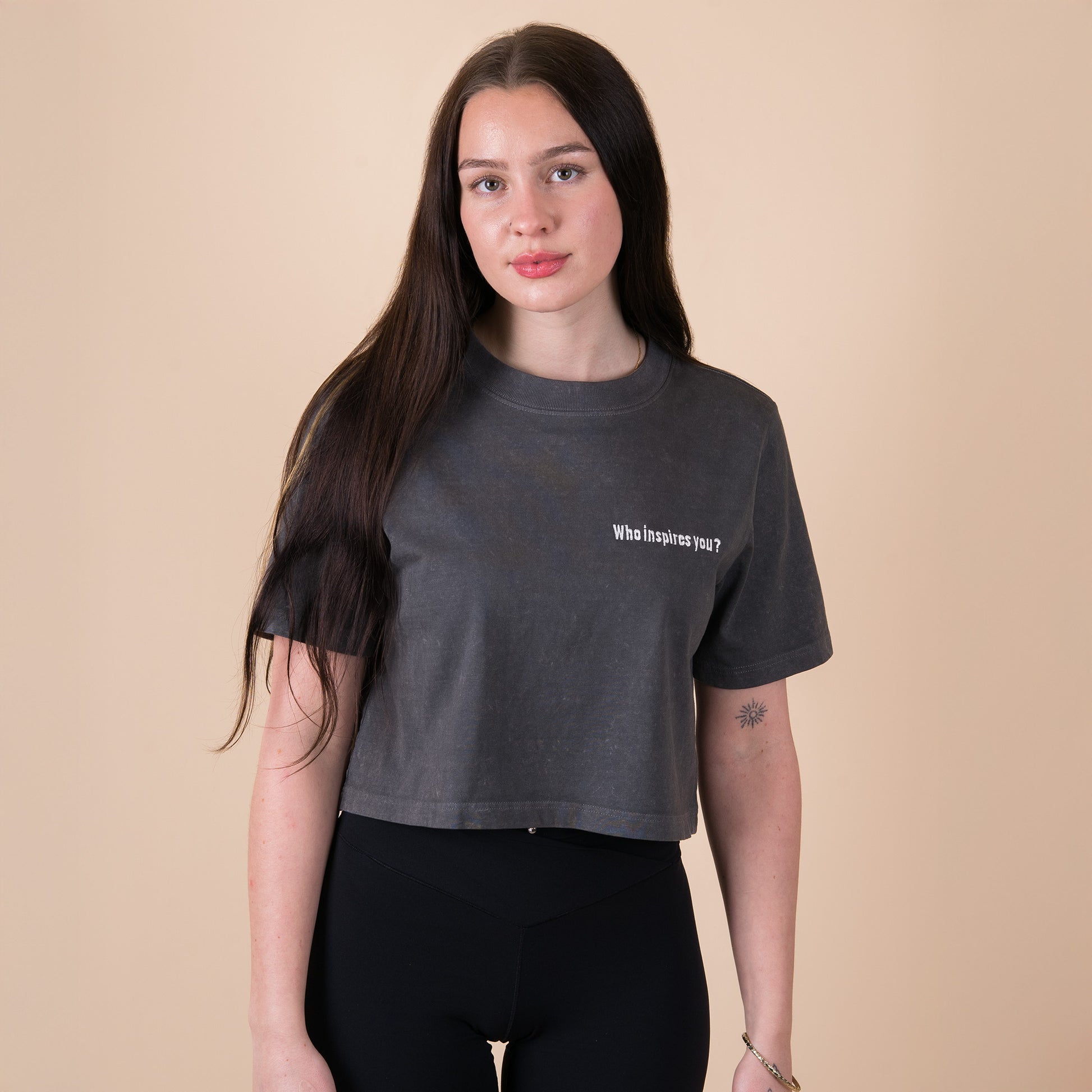 Q1 Who inspires you? - Acid Charcoal Crop Top